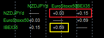 Корреляция между котировками NZD/JPY, Euro Stoxx 50 и IBEX 35 за 300 свечей D1. Терминал MetaTrader 4. Дата обращения: 31 марта 2022 г. Котировки предоставлены международным брокером AMarkets.
