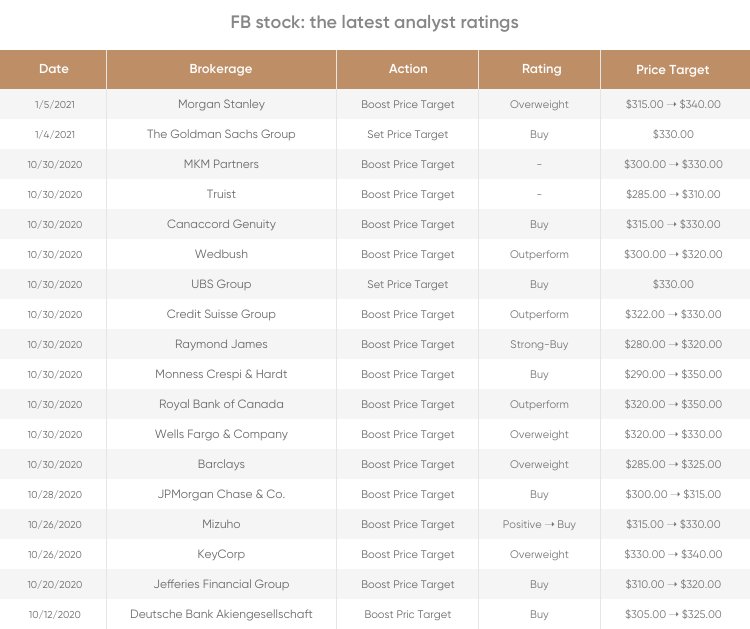 И другие крупные участники рынка. Они обозначили свои ценовые ориентиры по $FB к концу 2021 года: