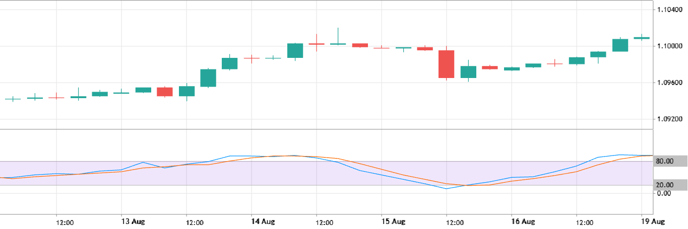 Ответ очень прост. «Дивергенция» значит «расхождение». Вероятнее всего, вам уже приходилось работать с осцилляторами. Если так, вы знаете, что в периоды развития тренда и во флэте график индикатора, как правило, движется параллельно графику цены. Посмотрите на этот пример с парой EUR/USD на четырехчасовом таймфрейме и индикатором Stochastic.