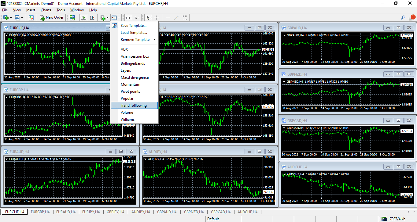 Дублируем процесс, размещая кросс-валютные пары! И после просто добавляем свой шаблон на каждый из графиков: