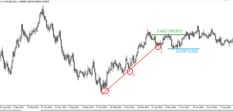 Стратегия «Три касания» лимитирует выставление Stop Loss на графике примерно в 20 пунктов вверх или вниз от точки входа в торги на рынке. Stop Loss является для трейдеров страховкой, защищающей от значительных потерь, так как он начинает закрывать сделки, как только ордера становятся убыточными. Однако, модель «Три касания» не работает, если валютная пара преодолеет поддержку или сопротивление, не проходя по трем касательным.