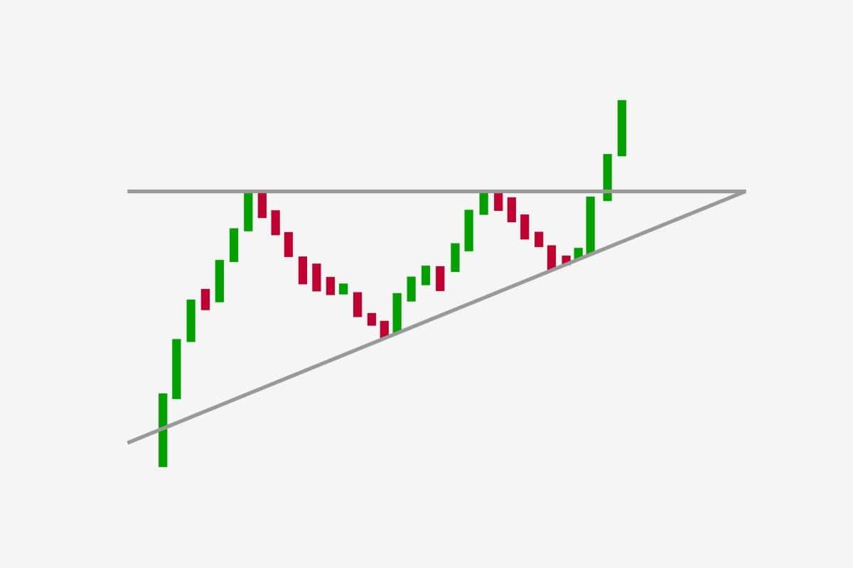 Как применить паттерн «восходящий треугольник» для торговли по линии тренда и для трейдинга на развороте тренда?