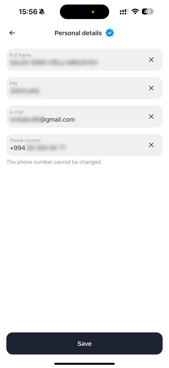На странице с персональной информацией должны быть видны ваши ФИО, знак верификации вашего аккаунта, номер телефона и e-mail. ФИО и номер телефона должны совпадать с данными в Личном кабинете AMarkets.