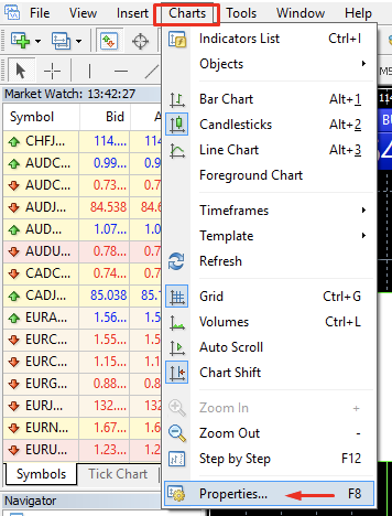 Выберите «Графики» в меню и нажмите «Свойства» в раскрывающемся списке или просто нажмите F8 на клавиатуре.