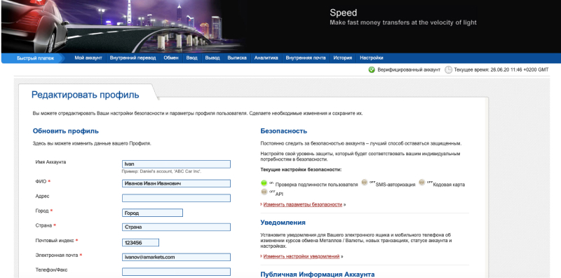 1. Необходимо зайти в свой аккаунт, используя логин и пароль. Затем перейти по ссылке. Во вкладке «Мой аккаунт» должно быть видно ваши ФИО, знак верификации вашего аккаунта и номера счетов.