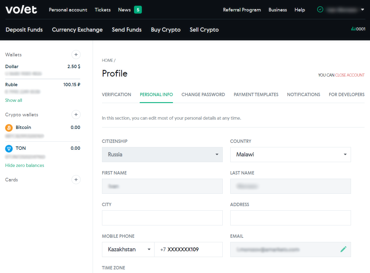 Обращаем ваше внимание, что для быстрой и успешной верификации вашего кошелька нам необходимы скриншоты двух вкладок, чтобы мы могли идентифицировать вас не только по ФИО, но и по другой персональной информации (номеру телефона, адресу и e-mail). Ваш аккаунт должен быть верифицирован.
